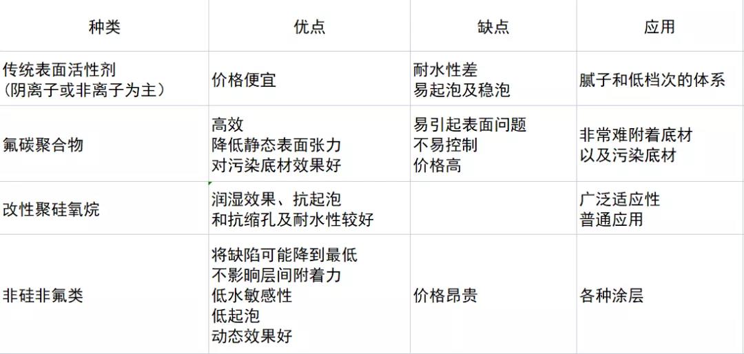 表面控制助劑的種類和作用包括:
