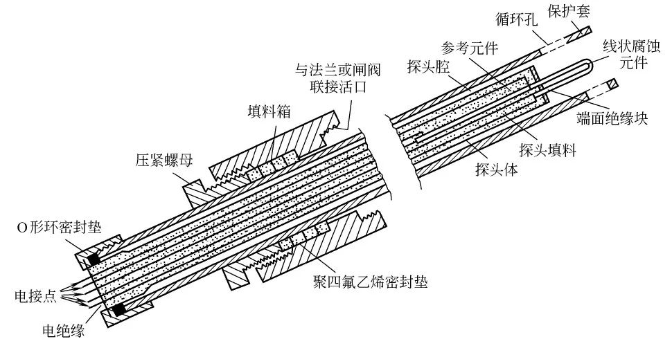 c.探頭位置。探頭應(yīng)放在能模擬所需試驗(yàn)條件的位置上。重要的參數(shù)是溫度和流速。要避免高速流體直接沖刷探頭,除非磨損腐蝕效應(yīng)是所要研究的目的。假如流體速度可能有重要影響,則可以采用與容器表面貼平安裝的平嵌式探頭來獲得更為精確的結(jié)果。