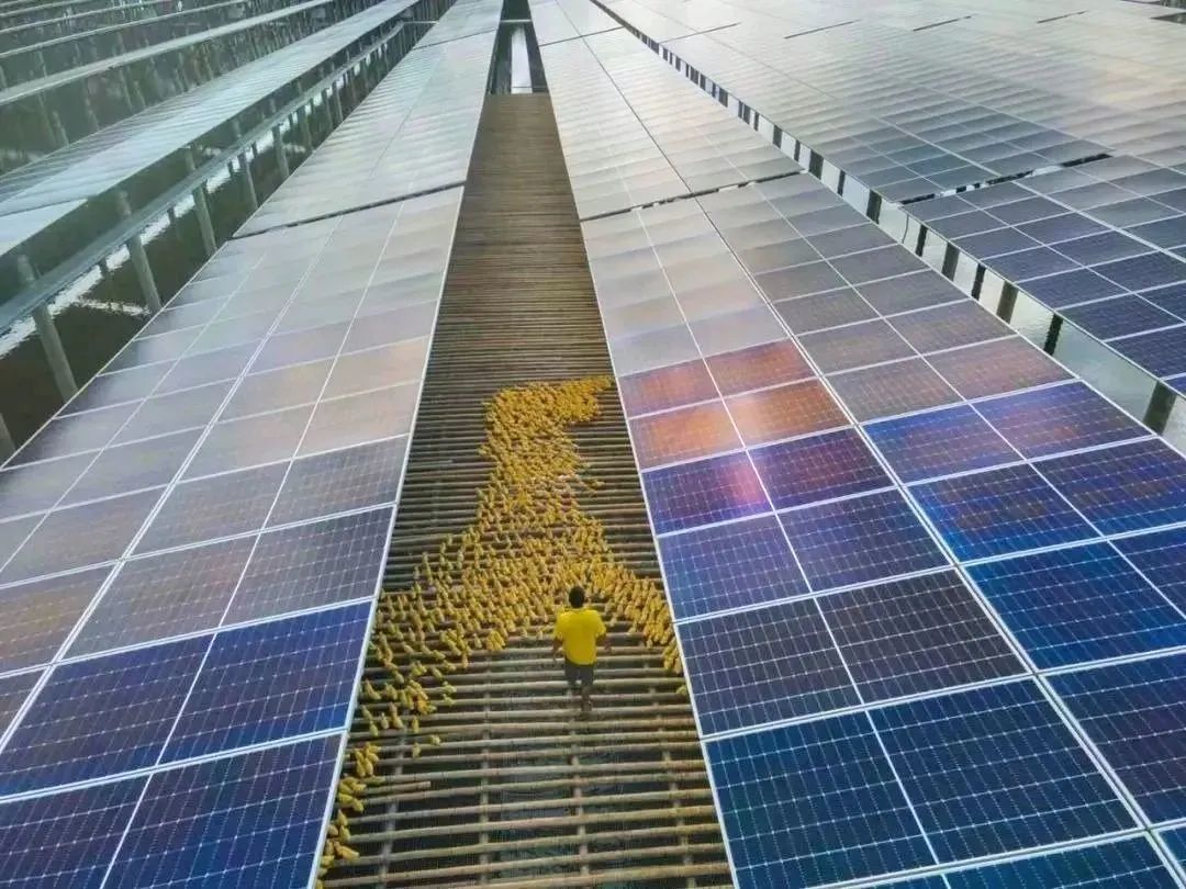 據(jù)了解,起初這個(gè)項(xiàng)目并不被村民所認(rèn)可,大家都擔(dān)心魚塘上面架設(shè)光伏板會(huì)影響到養(yǎng)殖。但在第一批魚鴨投入養(yǎng)殖后,“漁光互補(bǔ)”的優(yōu)勢很快顯現(xiàn)。往年的每個(gè)夏天,由于持續(xù)的高溫,養(yǎng)殖戶的魚苗和鴨苗往往損失慘重,沒有很好的解決辦法。而如今,魚塘里4米多高的光伏帶來一片陰涼。無論是水中的魚兒,還是水面的鴨子,存活率都提高了,成為“漁光互補(bǔ)“模式帶來的最直觀收益。